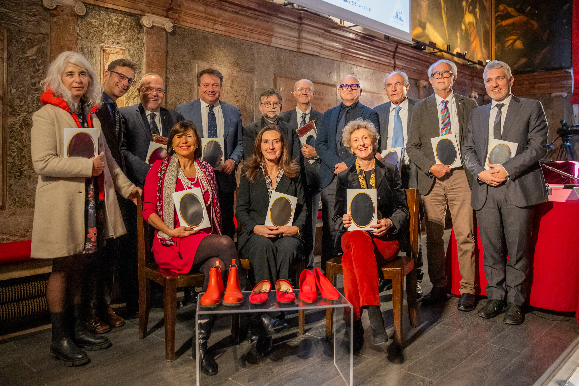 All’inizio della cerimonia sono state esposte alcune paia di scarpe rosse davanti al tavolo dei relatori, per ricordare la Giornata Internazionale contro la violenza sulle donne.