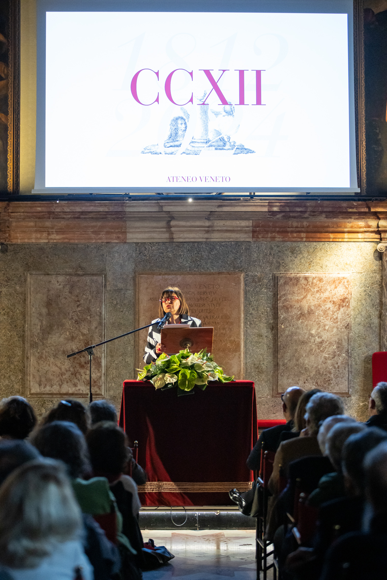 Ad accogliere nell’Aula Magna di Campo San Fantin il relatore e le Autorità invitate è stata la Presidente dell’Ateneo Veneto, Antonella Magaraggia, che ha delineato l’attività culturale svolta dall’Ateneo Veneto nel corso del 2023, anticipando alcuni filoni di interesse delle prossime iniziative culturali dell’istituto, a iniziare dal convegno internazionale su “Donne e giustizia” di martedì 5 marzo.